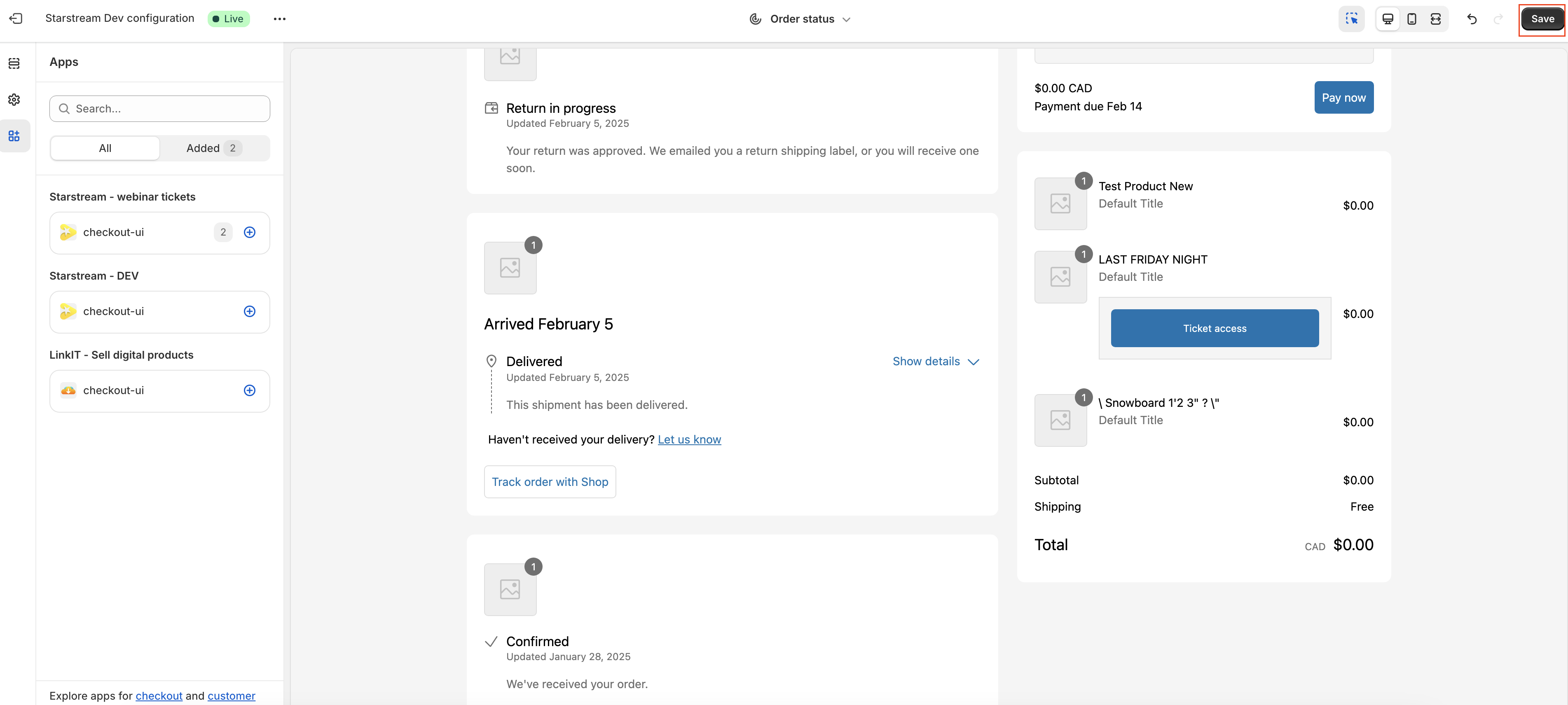 Starstream offers a feature for you customers to access their tickets right from the Thank You Page and the Order Status Page.