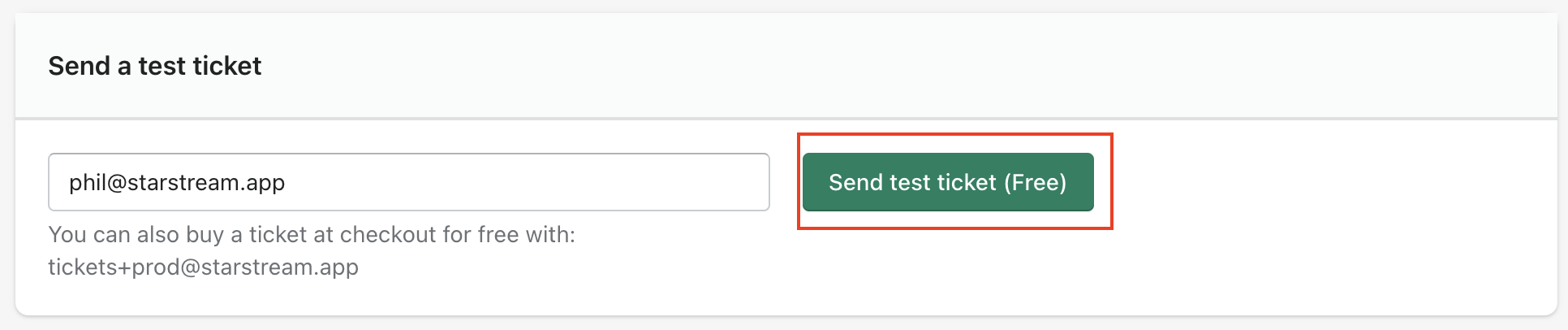 4. From the Send a test ticket section, add the email you want to send the test ticket to, then click the green **Send the test ticket (Free)** button.